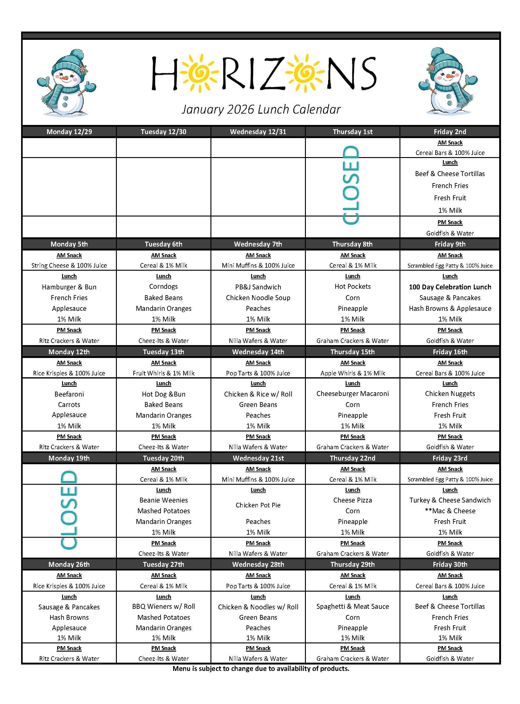 Lunch / Snack Calendars